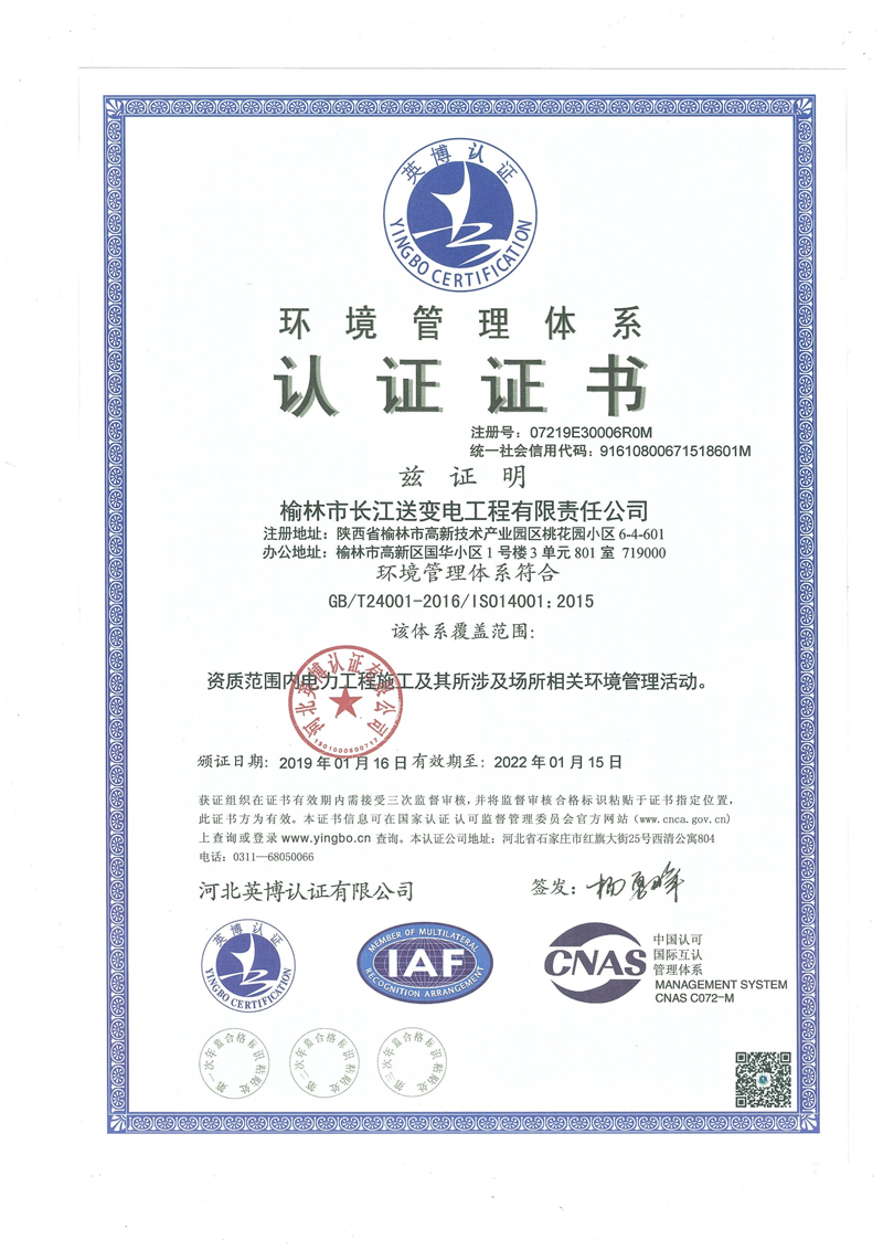 環(huán)境管理體系認(rèn)證證書