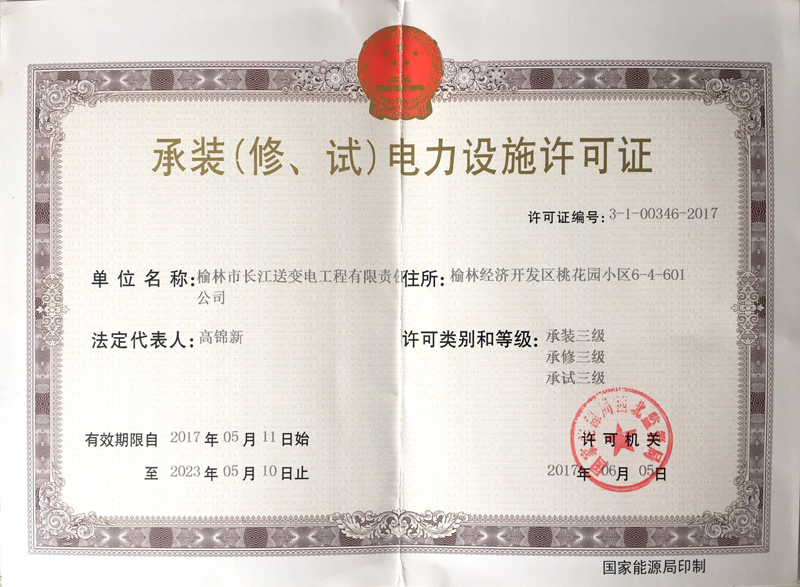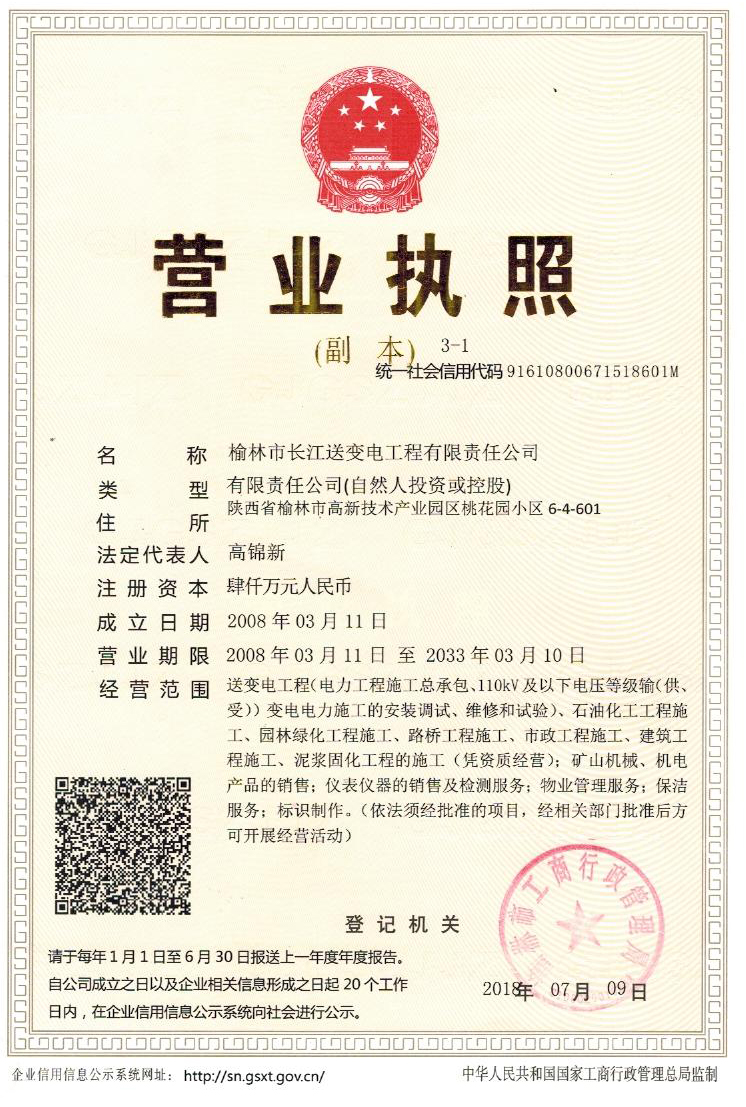 end-->安全生產(chǎn)許可證 -榆林市長(zhǎng)江送變電工程有限責(zé)任公司">